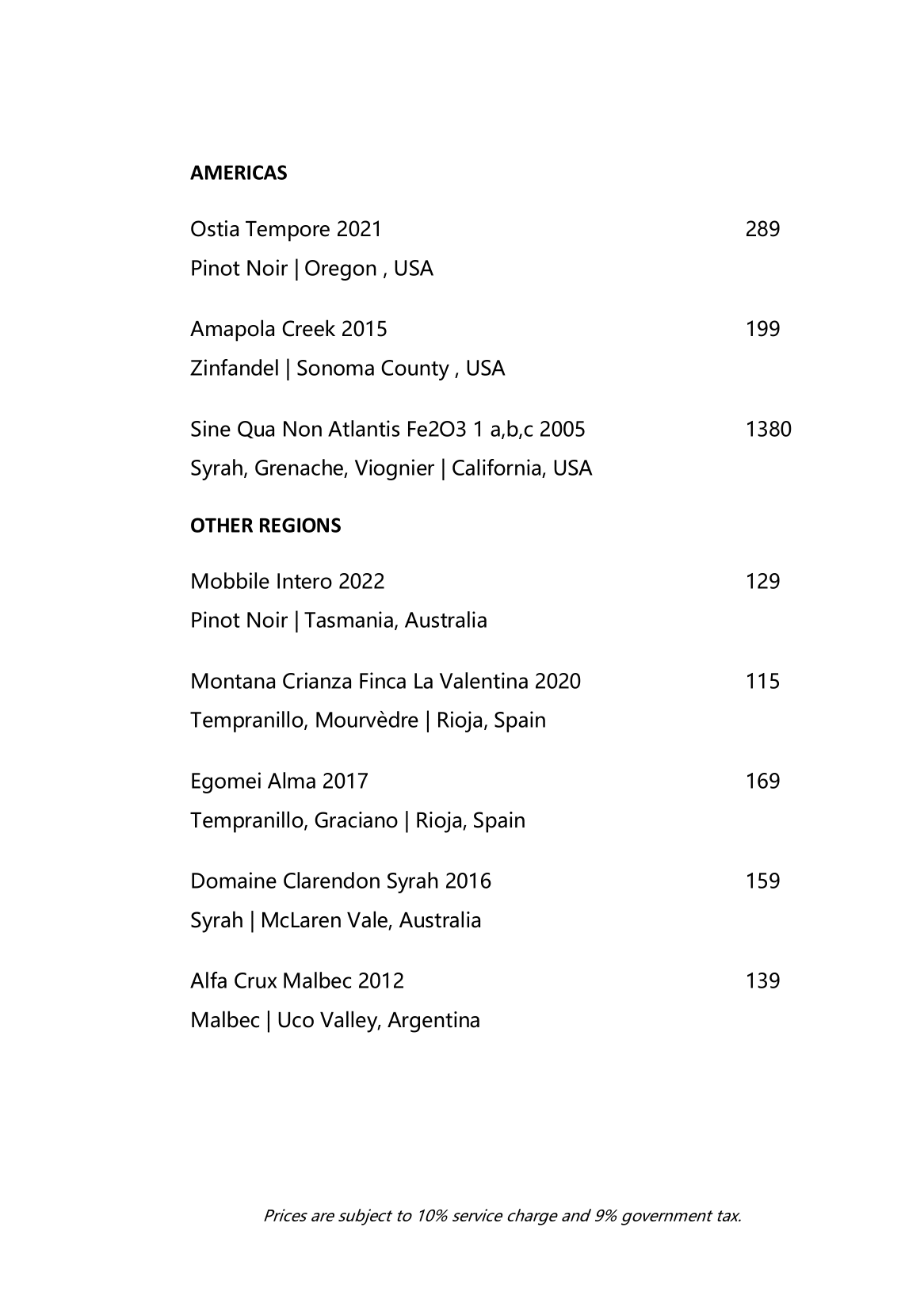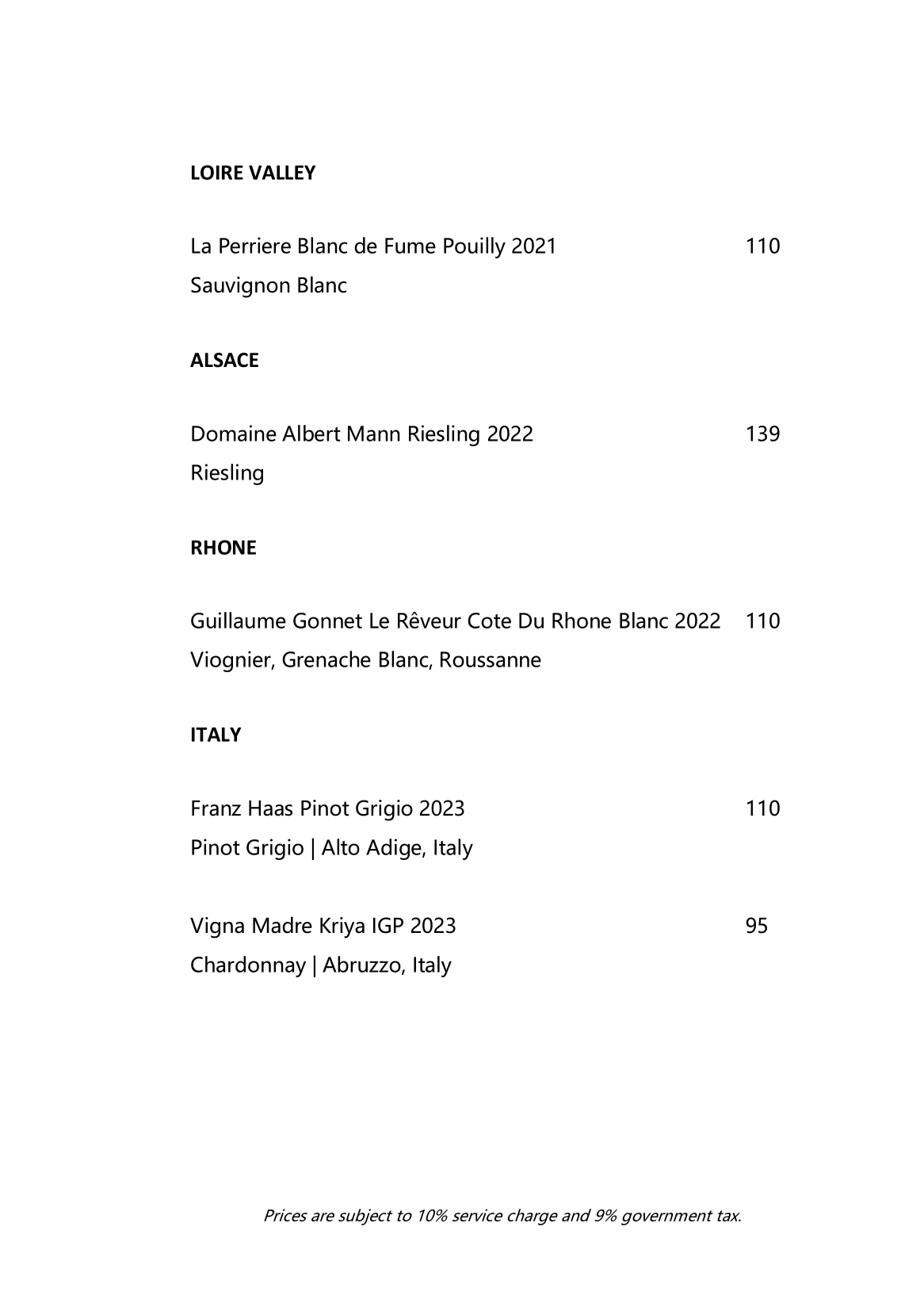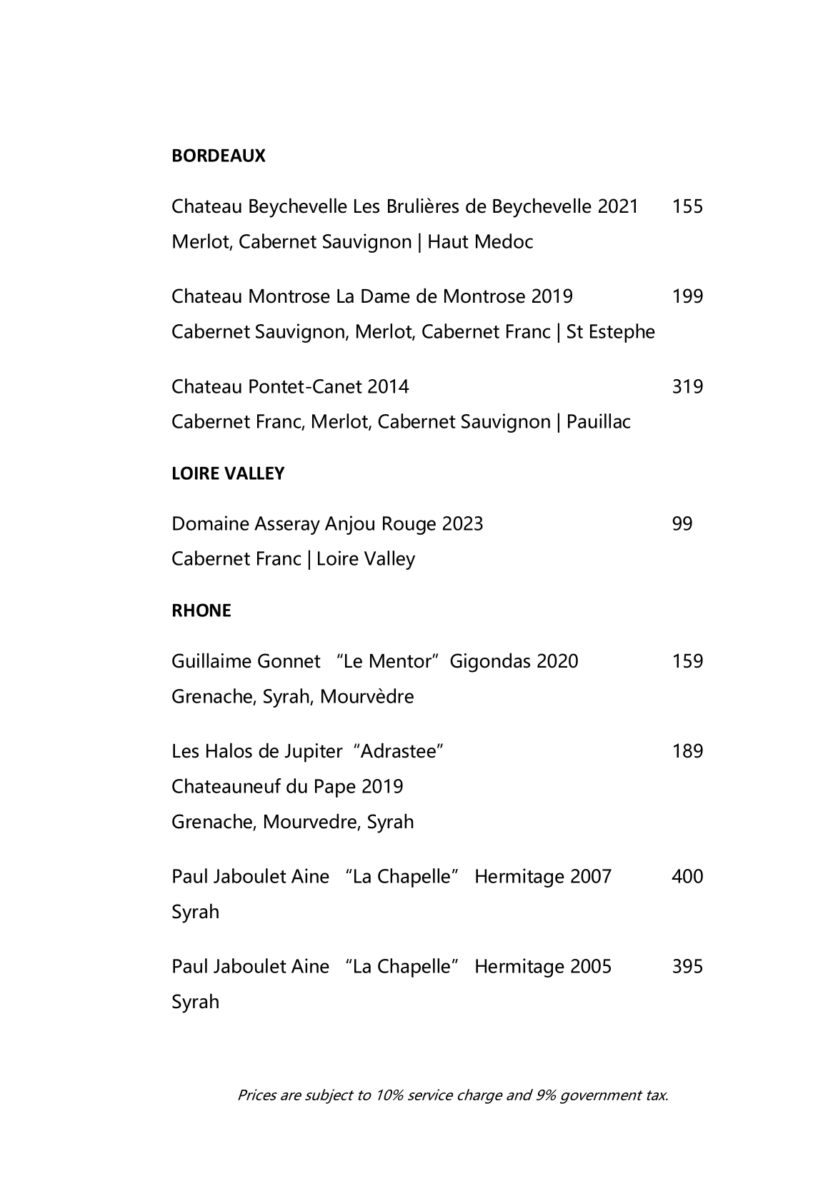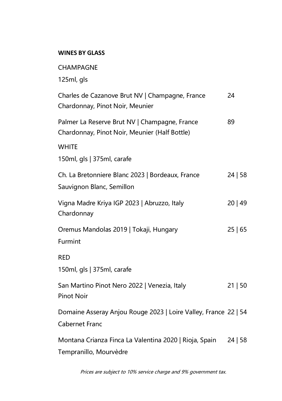 Beverage Menu