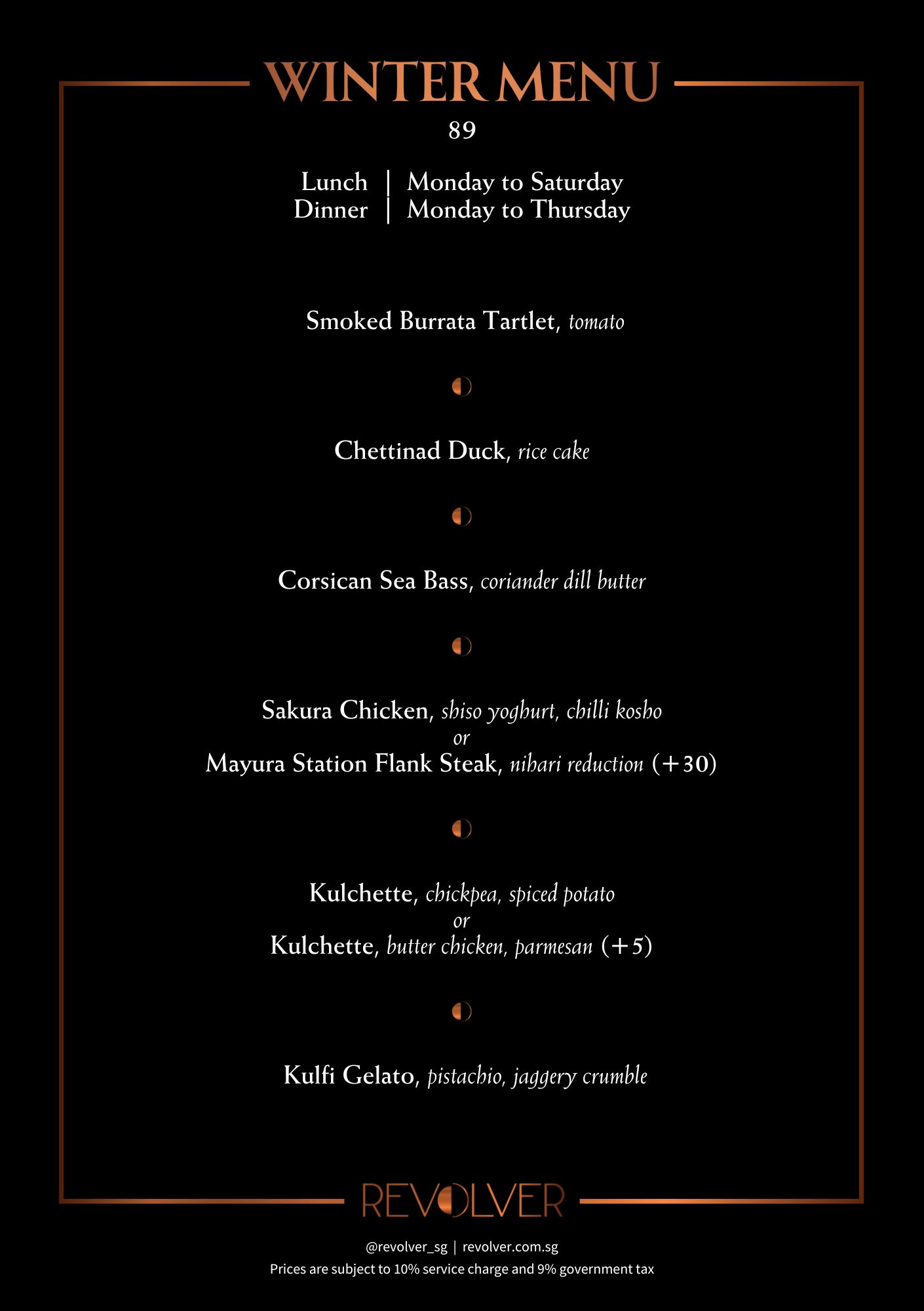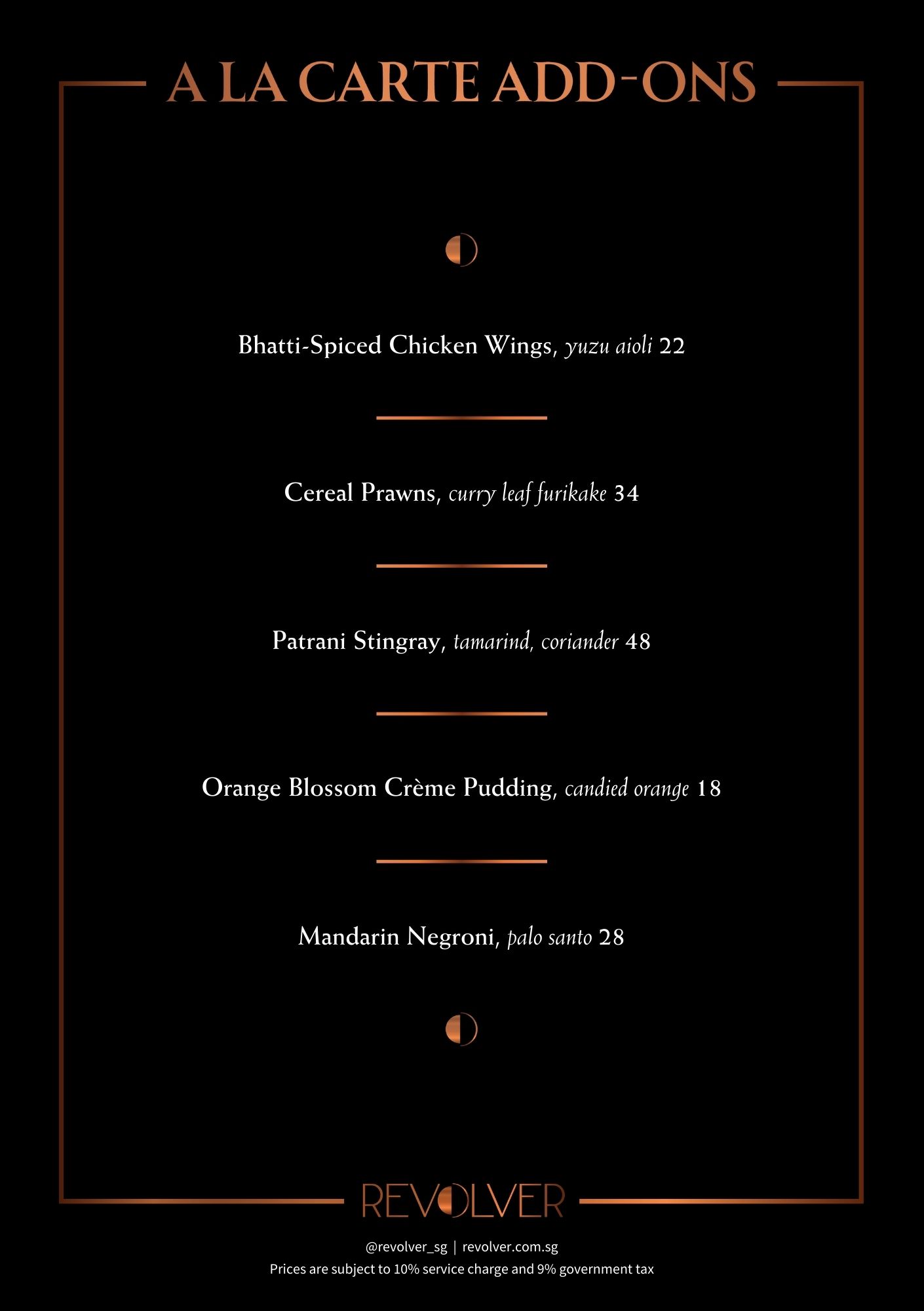 A La Carte Menu